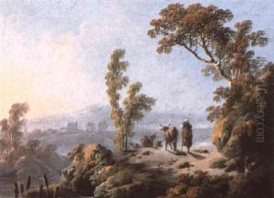 Figures By A Brook With A Dovecote And Other Buildings In The Distance And A Sheperdhess