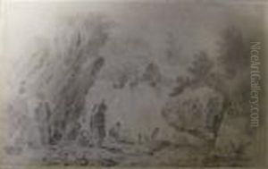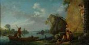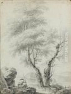 A Wooded River Landscape With Shepherds And Their Flock At Rest