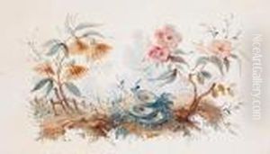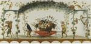 Design For A Chinoiserie Panel, Showing A Flautist Seated In Aniche Surrounded With Flowers