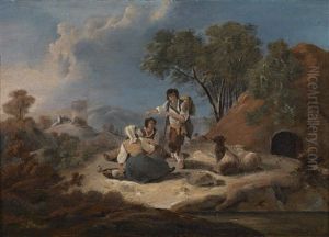 Landschaft Mit Einer Portugiesischen Schaferfamilie Und Hirten An Einem Bachlauf (+ Another, Similar; Pair)