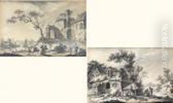 Pierre Noire, Estompe, Lavis De Noir Et De Gris. Filets D'encadrement A L'encre Brune Et Noire.