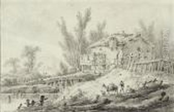 Travellers With A Donkey On The Banks Of A River
