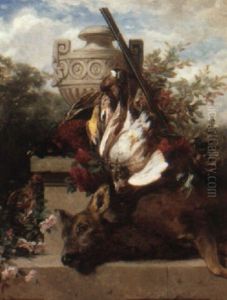 Jagdstilleben Mit Vogeln, Reh Und Blumen