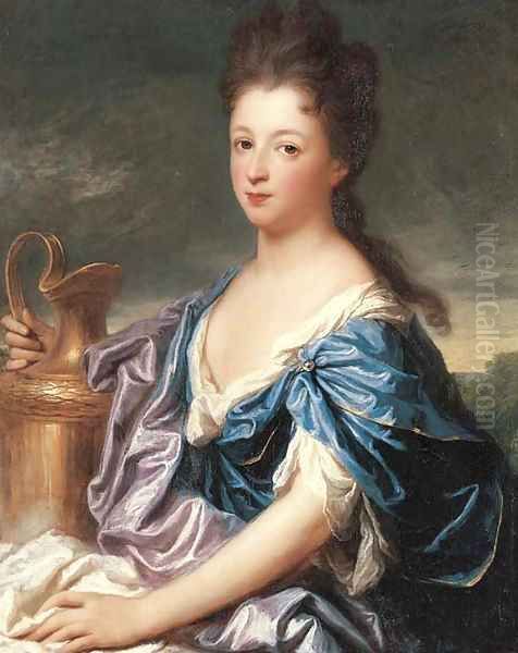 Portrait of a lady, said to be the Marquise d'Epinay as Hebe, half-length, in a blue dress, holding an urn