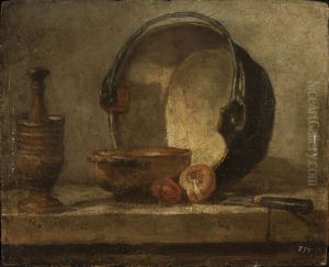 Nature Morte Au Chaudron Et Legumes Sur Un Entablement