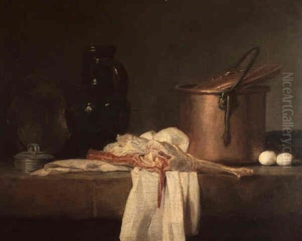 Bring the timeless beauty of Jean-Baptiste-Simeon Chardin's Gigot Sur Un Linge Blanc Avec Une Marmite Et Son Couvercle, Deux Oeufs, Un Chaudron, Une Cruche Et Un Couvercle into your home with a handmade oil painting reproduction. Carefully recreated on canvas by skilled artists using traditional techniques, this piece captures the delicate brushwork, subtle light, and vibrant color of the original masterpiece. With museum-level quality and rich texture, it brings elegance and artistic depth to any space. Enjoy free shipping and make this masterpiece a part of your personal collection.