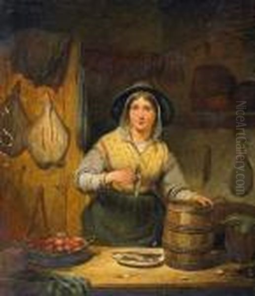 Bring the timeless beauty of Jean Baptiste Van Eycken's The Herring Merchant into your home with a handmade oil painting reproduction. Carefully recreated on canvas by skilled artists using traditional techniques, this piece captures the delicate brushwork, subtle light, and vibrant color of the original masterpiece. With museum-level quality and rich texture, it brings elegance and artistic depth to any space. Enjoy free shipping and make this masterpiece a part of your personal collection.