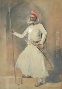 A Turkish Soldier Standing In A Landscape