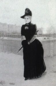 Portrait Of A Young Woman, Three Quarter Length, In A Winter Park With Fur Cape, Muff And Hat