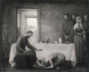 Bring the timeless beauty of Jean Beraud's St. Mary Magdalene in the House of Simon the Pharisee into your home with a handmade oil painting reproduction. Carefully recreated on canvas by skilled artists using traditional techniques, this piece captures the delicate brushwork, subtle light, and vibrant color of the original masterpiece. With museum-level quality and rich texture, it brings elegance and artistic depth to any space. Enjoy free shipping and make this masterpiece a part of your personal collection.