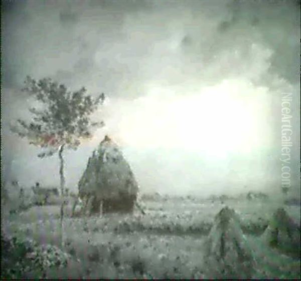 Haystacks By Moonlight Oil Painting by Jean-Charles Cazin
