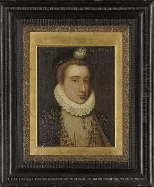 Portrait Of A Gentleman, Traditionally Identified As Henry Ii, King Of Navarre, Bust-length, In A Black And Gold Embroidered Coat And A White Ruff, With A Gold Necklace And A Black And Gold Embroidered Plumed Cap