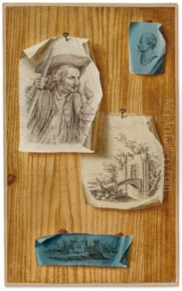 Trompe L'oeil Depicting Engravings And Drawings (+ Another; Pair)