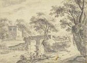 An Italianate Landscape With Horsemen On A River-Bank