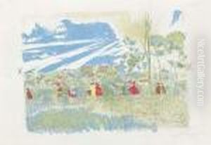 Scenede Plage, Pastel Sur Papier. Signe En Bas A Gauche E. Vuillard.ecole Francaise. Vers 1900. Dim.: 24x32 Cm