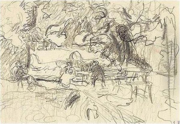 Edouard , -, Etude Pour 'les Decorations Pour Bois-lurette: A La Divette, Le Bord De La Riviere'' Stamped With The Initials , Pencil On Paper, 11.5 By 16.5 Cm., 4 1/2 By 6 1/2 In