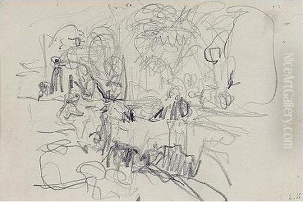 Edouard , -, Interieur, Stamped With The Initials , Charcoal On Paper, 11 By 15.5 Cm., 4 1/2 By 6 1/8 In