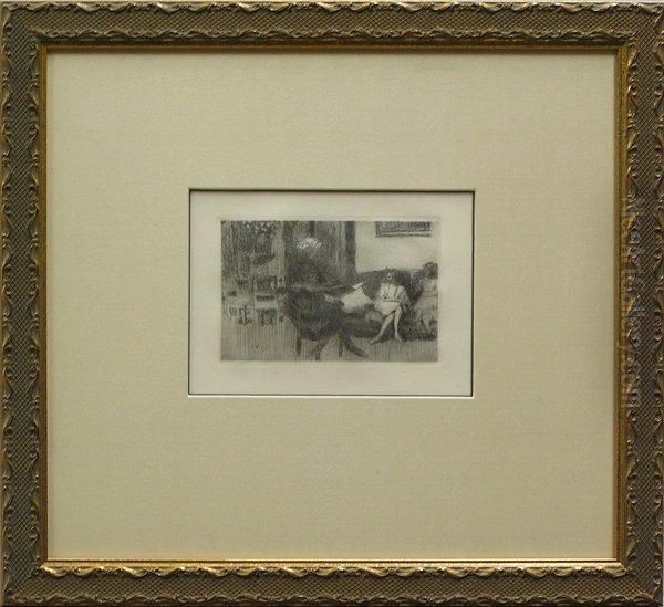 Interieur Au Canape Ou Soir Oil Painting by Jean-Edouard Vuillard