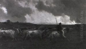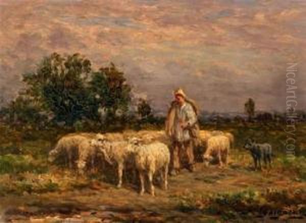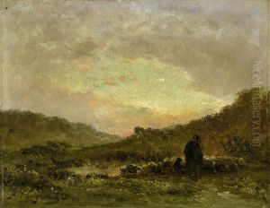 Berger Et Son Troupeau Oil Painting by Jean-Ferdinand Chaigneau
