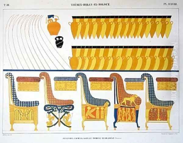 Bring the timeless beauty of Jean Francois Champollion's Frescoes of Furniture from the Tomb of Ramses IV into your home with a handmade oil painting reproduction. Carefully recreated on canvas by skilled artists using traditional techniques, this piece captures the delicate brushwork, subtle light, and vibrant color of the original masterpiece. With museum-level quality and rich texture, it brings elegance and artistic depth to any space. Enjoy free shipping and make this masterpiece a part of your personal collection.