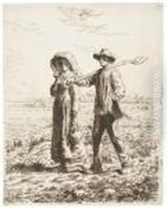 Le Depart Pour Le Travail. 1863. Eau-forte.