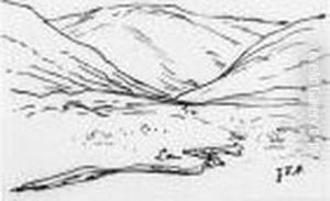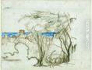 Vue D'un Hameau, Normandie, Crayon Noir, 11 X 15 Cm