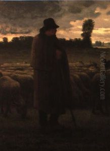 Un Berger Et Son Troupeau Sur La Plaine Pres De Barbizon (shepherd And Sheep On The Plain Near Barbizon)