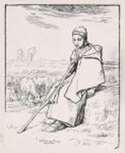 Jeune Bergere Avec Son Troupeau Au Bord D'une Route