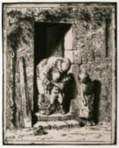 Jeune Bergere Avec Son Troupeau Au Bord D'une Route