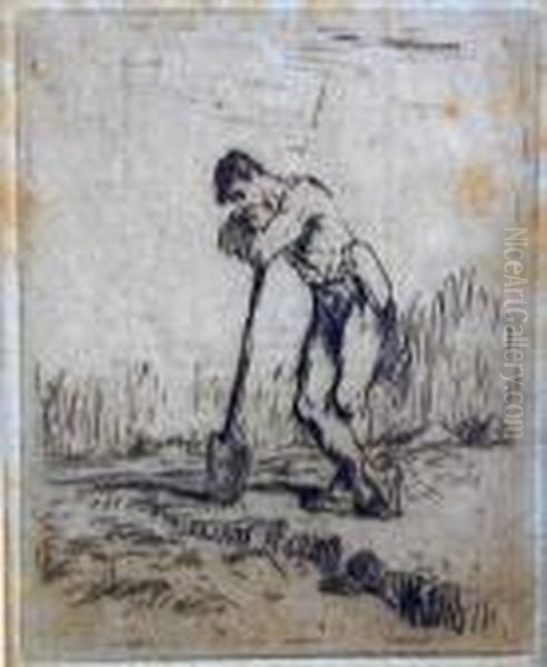 L'homme Appuye Sur Sa Beche