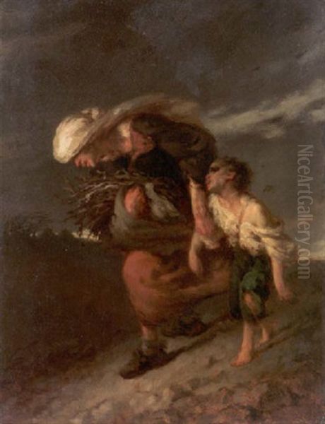 L'horage (das Gewitter). Eine Holzsammlerin Fluchtet Mit Ihrem Knaben Vor Einem Gewitter