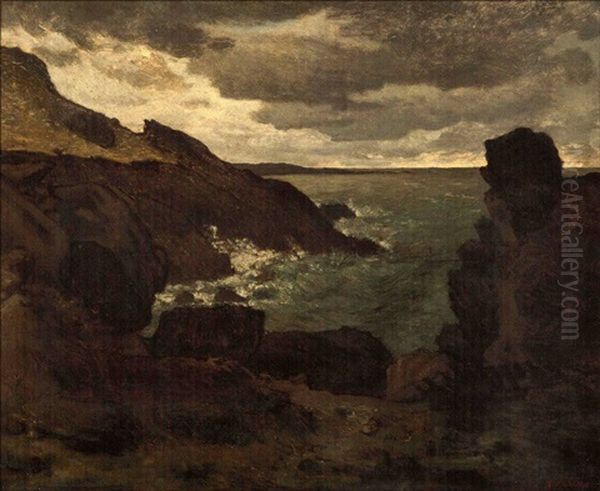 The Sea By The Cliffs At Greville Oil Painting by Jean-Francois Millet