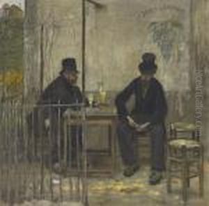 Portrait Of An Old Man Seated Half-length Holding A Glass; Oil On Board, Bears Initials, 22x9.5cm
