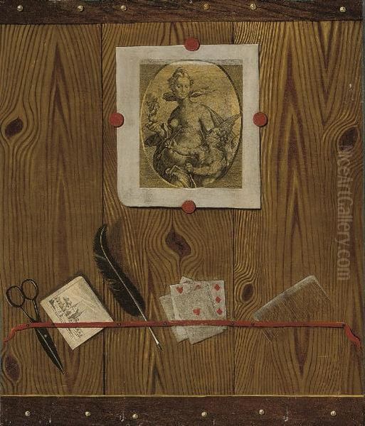 Bring the timeless beauty of Jean-Francois de Le Motte's A Trompe L'oeil Of Feathers, Cards And A Comb, With Prints Affixed into your home with a handmade oil painting reproduction. Carefully recreated on canvas by skilled artists using traditional techniques, this piece captures the delicate brushwork, subtle light, and vibrant color of the original masterpiece. With museum-level quality and rich texture, it brings elegance and artistic depth to any space. Enjoy free shipping and make this masterpiece a part of your personal collection.