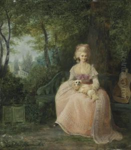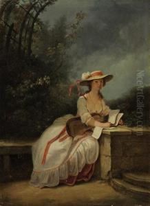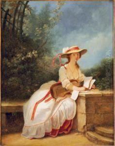 A Lady Seated In A Garden With Music