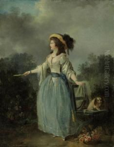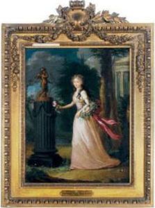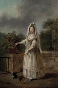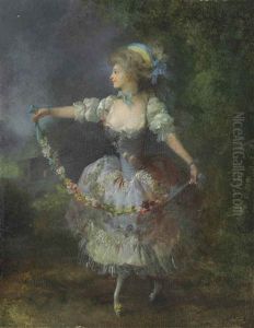 A Young Lady In A Garden, Holding A Garland Of Flowers