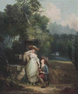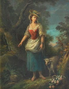 A Shepherd Courting A Shepherdess By A Fountain, With A Sheep, In A Wooded Landscape