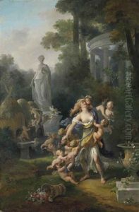 Venus Entouree D'une Ronde D'amours Pres D'un Buisson De Roses, Avec Cupidon Lui Decochant Une Fleche