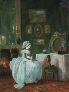 A Young Woman Seated At A Poudreuse (dressing Table)