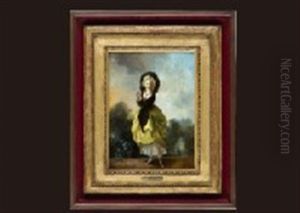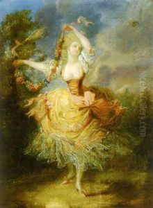 Bouquetiere Dansant, A La Robe Jaune, Le Corsage Orne De Roses