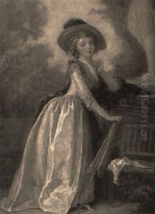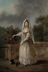 Portrait Of A Lady In Masquerade Dress, On A Terrace With A Spaniel