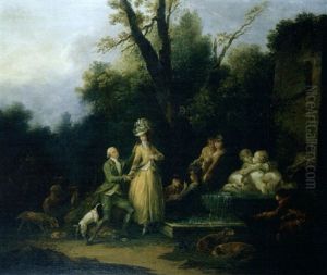 Elegant Company Playing Blind Man's Buff In A Wooded Landscape