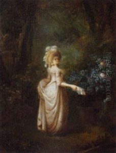 A Young Lady In A Garden Holding A Garland Of Flowers