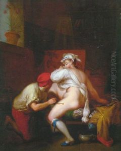 A Gentleman Attended To By A Maidservant As A Youth Steals A Kiss From His Wife