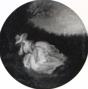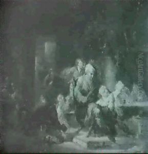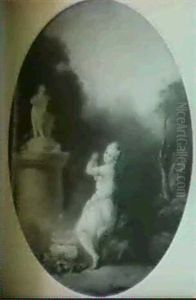 A Woman In Classical Costume Washing Her Children At A Fountain In A Forest Glade