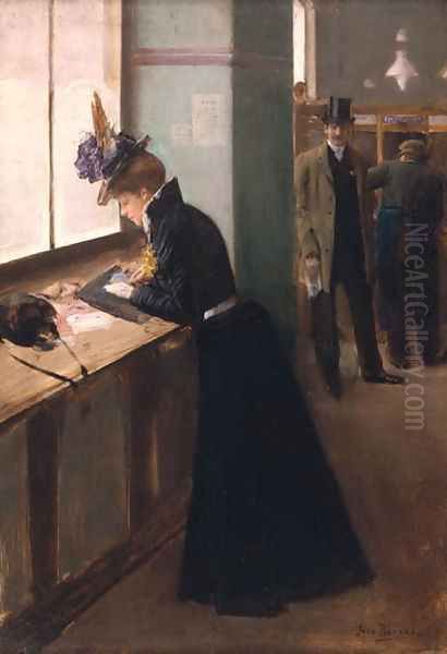 Bring the timeless beauty of Jean-Georges Beraud's At the Telegraph into your home with a handmade oil painting reproduction. Carefully recreated on canvas by skilled artists using traditional techniques, this piece captures the delicate brushwork, subtle light, and vibrant color of the original masterpiece. With museum-level quality and rich texture, it brings elegance and artistic depth to any space. Enjoy free shipping and make this masterpiece a part of your personal collection.