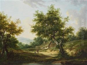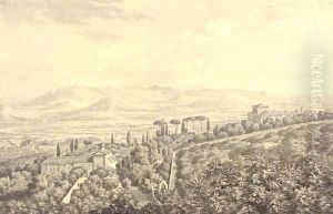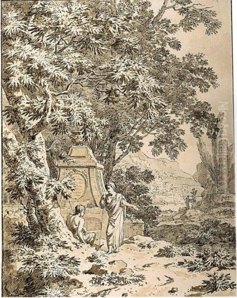 An Arcadian Landscape With Figures Resting Near A Classical Tomb