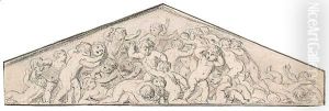 Four Putti Surrounding A Relief Portrait Of A Classical Figure