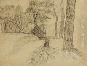 Fisherman In A Quiet Village Landscape