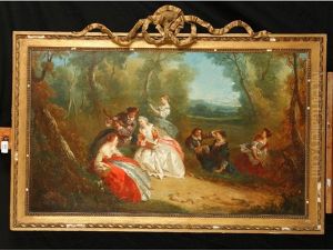 Fetes Galantes, Showing Lovers Making Merry In A Garden Landscape (pair)